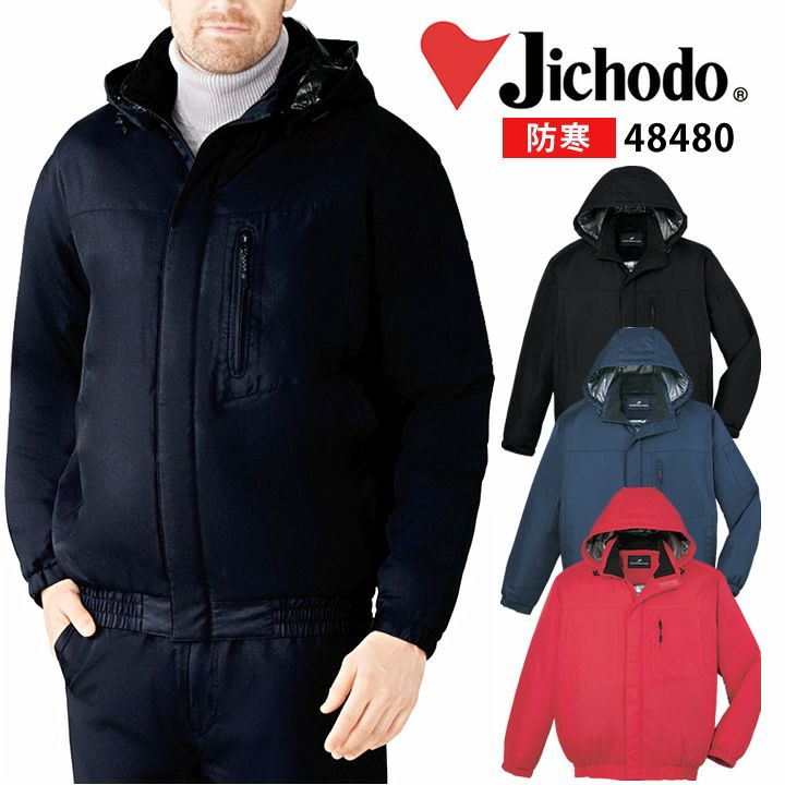 自重堂 裏アルミ 防寒ブルゾン (フード付) 48480 防寒着 防寒服 ジャケット ジャンパー 作業服 作業着 オレンジ 人気 秋冬【5L】