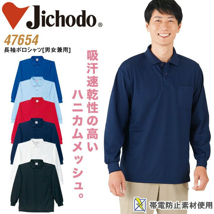 長袖ポロシャツ 自重堂 47654 男女兼用 メンズ レディース 帯電防止 吸汗速乾 オールシーズン 作業服 作業着【4L-5L】