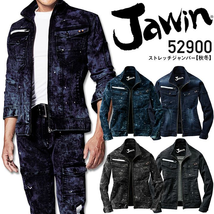 ジャウィン ストレッチジャンパー 52900 デニム 長袖ジャケット ブルゾン【秋冬】メンズ 男性用 作業着 作業服 Jawin 自重堂【4L-5L】