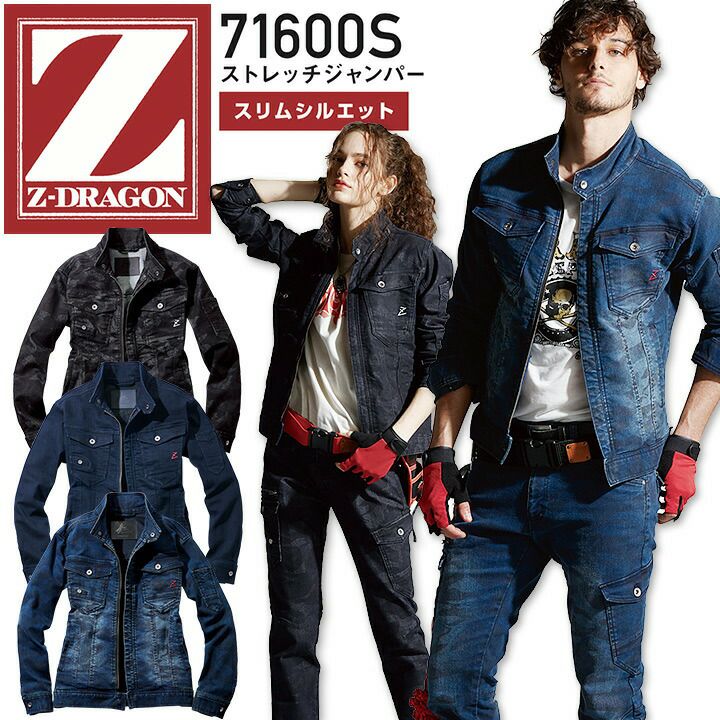 Z-DRAGON デニム ストレッチジャンパー 71600S スリムシルエット 秋冬 男女兼用 メンズ レディース ジャケット ブルゾン 作業服 作業着 かっこいい おしゃれ 自重堂【4L-5L】