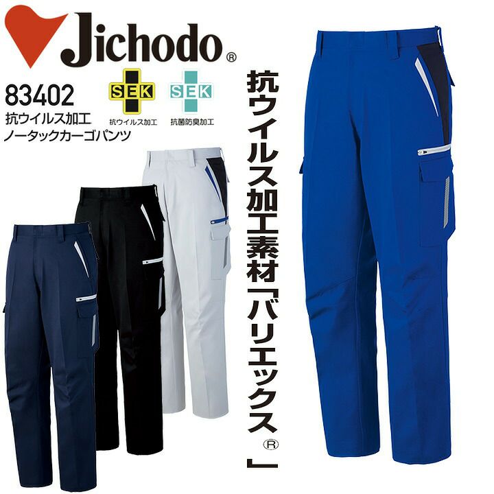 抗ウイルス加工 ノータックカーゴパンツ 自重堂 83402 抗菌 防臭 帯電防止 男女兼用 メンズ レディース ズボン 作業服 作業着【91-106】