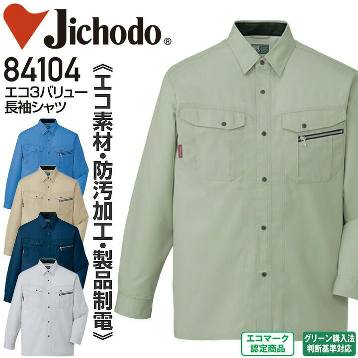 長袖シャツ エコ3バリュー 自重堂 84104 エコ素材 防汚 帯電防止 男女兼用 メンズ レディース オールシーズン 作業服 作業着【4L-6L】