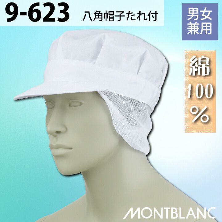 【メール便送料無料】 住商モンブラン 八角帽子 たれ付 兼用 9-623 衛生帽子 衛生キャップ 飲食 給食 食品衛生 食品加工 調理 厨房 白 吸汗 メッシュ 綿 キャップ ツバ付 MONTBLANC 男女兼用