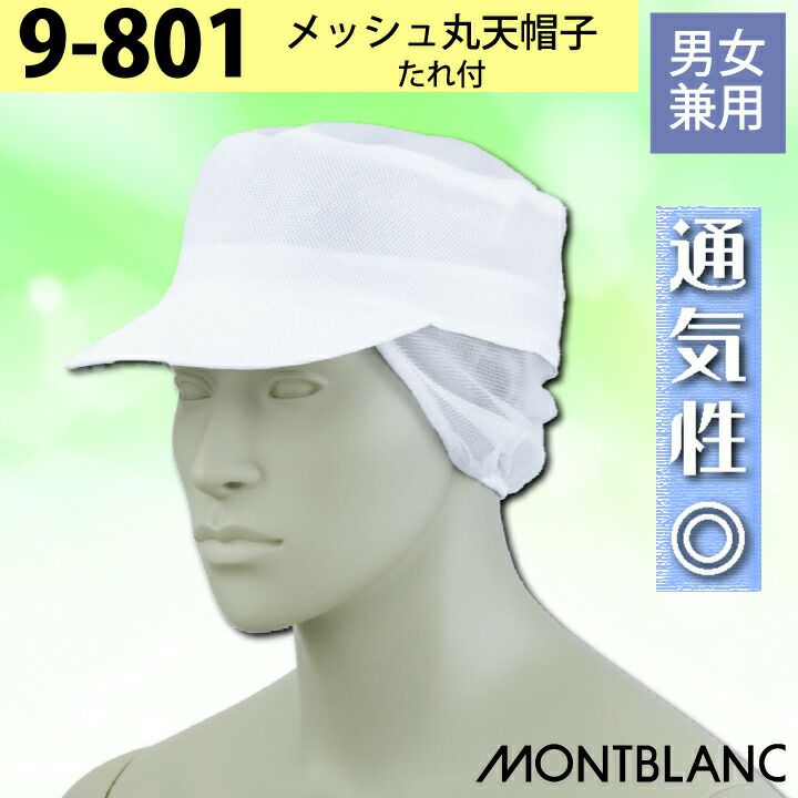 【メール便送料無料】 住商モンブラン メッシュ丸天帽子 たれ付 9-801 衛生帽子 衛生キャップ 飲食 給食 食品衛生 食品加工 調理 厨房 白 メッシュ ダブルメッシュ 通気性 キャップ ツバ付 MONTBLANC 男女兼用 フリーサイズ 綿混