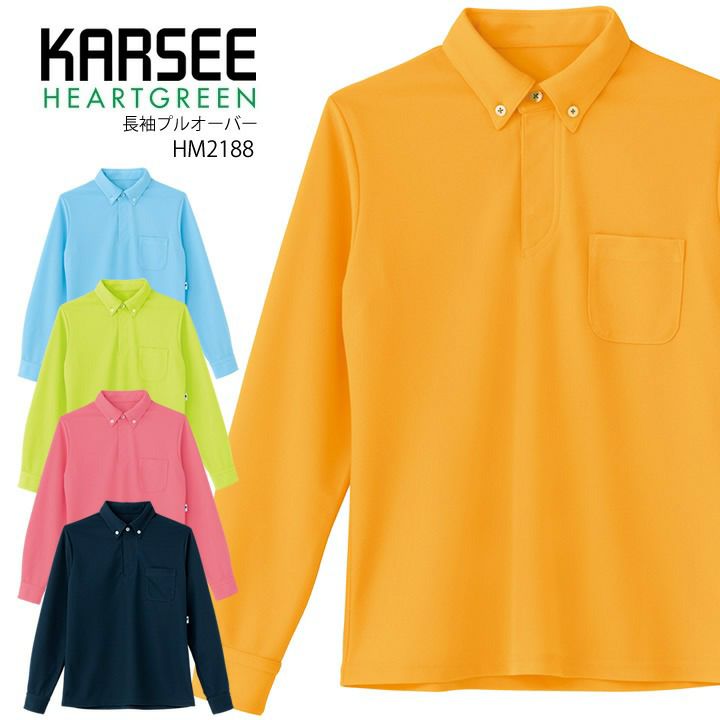 カーシー 長袖プルオーバー HM2188 男女兼用 レディース メンズ 吸汗速乾 ストレッチ 抗菌 制菌 SEK 工業洗濯対応 HEARTGREEN(ハートグリーン) 介護 医療 メディカル ユニフォーム【4L-5L】