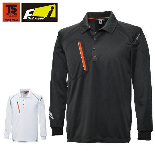 TS DESIGN 長袖ポロシャツ FLASH 5075 男女兼用 反射機能 作業着 作業服 藤和 制服 ユニフォーム【4L-5L】