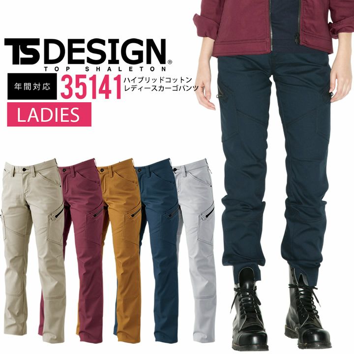 レディースカーゴパンツ ハイブリッドコットン 35141 TS-DESIGN 女性用 年間 オールシーズン 軽量 ストレッチ ズボン 作業着 作業服 藤和 TSデザイン【5L】
