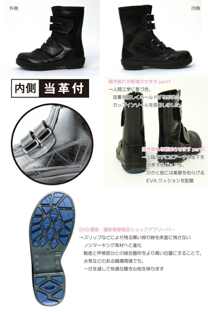 他の画像を見る 【安全靴】【ワイドACM樹脂先芯】 【JIS T 8101 革製S種<普通作業用>E合格】 【送料無料】【シモン】8538Tritheo 安全長編上靴(マジック) 黒 男女兼用【29cm】 本体価格 ¥ 14,520 税込 カートに入れる お気に入りに登録する