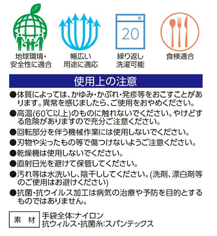 他の画像を見る 日本の食品衛生法に適合 【メール便送料無料】 1双入り 抗ウイルス 抗菌 手袋 N-3800 ウイルス対策 下履き手袋 薄手 食検適合 ホテルスタッフ ホテルマン 受付 秘書 店員 レジ スーパー 清掃 ごみ収集 介護施設 病院 本体価格 ¥ 600 税込 在庫切れ 詳細を見る お気に入りに登録する