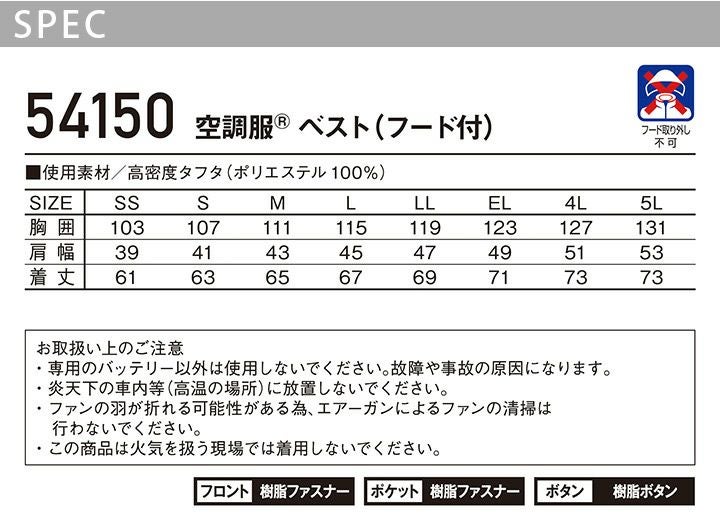 他の画像を見る ロゴ入りテープやプリント柄などJawinのこだわりが詰まった一着。 空調服 ベスト フード付き 服のみ ジャウィン 54150 春夏 アウトドア スポーツ ファン付き作業服 作業着 熱中症対策 JAWIN 自重堂【EL】 本体価格 ¥ 3,520 税込 在庫切れ カートに入れる お気に入りに登録する