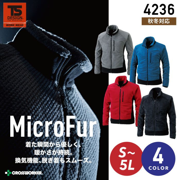 他の画像を見る 着た瞬間から優しく、暖かさが持続。換気機能、脱ぎ着のしやすさ TS-DESIGN 長袖ジャケット マイクロファー 4236 長袖ジャンパー【秋冬】 藤和 作業服 作業着【5L】 本体価格 ¥ 4,928 税込 在庫切れ カートに入れる お気に入りに登録する