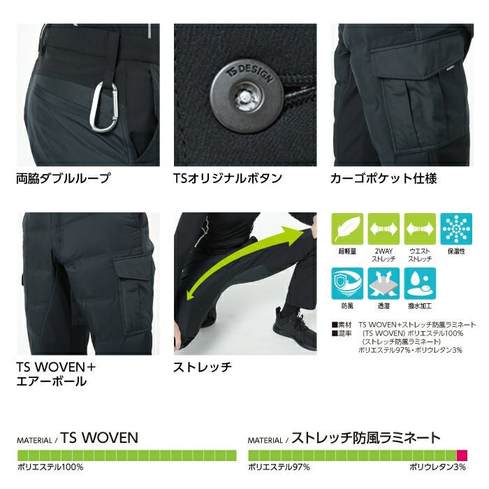 他の画像を見る 織りで間仕切りを作るステッチレス構造 間仕切り部分に軽量綿「エアボール」を入れることで保温性を実現 TS DESIGN ストレッチ 防風カーゴパンツ 84724 ズボン 作業着 作業服 藤和【4L】 本体価格 ¥ 5,819 税込 在庫切れ カートに入れる お気に入りに登録する