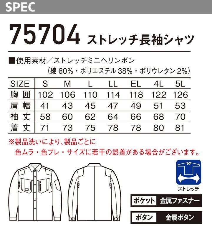 他の画像を見る バイオウォッシュ加工を施したストレッチ素材。スリムシルエットでデザイン性と機能性を合わせ持つシリーズ Z-DRAGON ストレッチ 長袖シャツ 75704 【春夏】 細身 自重堂 作業着 作業服 ジードラゴン【EL-4L】 本体価格 ¥ 3,740 税込 在庫切れ カートに入れる お気に入りに登録する