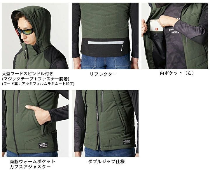 他の画像を見る ワークフィールドで役立つ様々な機能を備えたベスト。 バートル 防寒ベスト 5274 秋冬 サーモクラフト 男女兼用 メンズ レディース 防風 保温 フード付き 反射 防寒着 作業服 作業着 BURTLE 保温 おしゃれ カッコイイ レジャー アウトドア【3XL】 本体価格 ¥ 5,900 税込 在庫切れ カートに入れる お気に入りに登録する