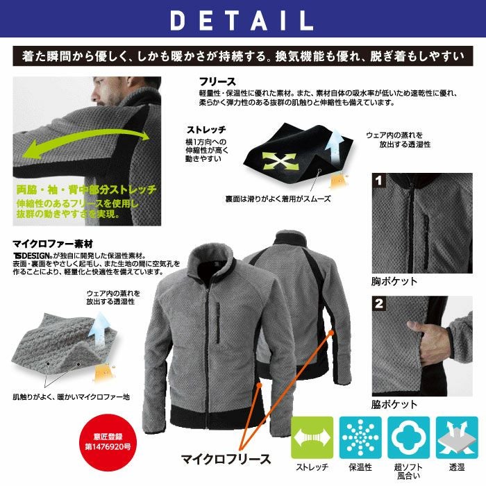 他の画像を見る 着た瞬間から優しく、暖かさが持続。換気機能、脱ぎ着のしやすさ TS-DESIGN 長袖ジャケット マイクロファー 4236 長袖ジャンパー【秋冬】 藤和 作業服 作業着【4L】 本体価格 ¥ 4,708 税込 在庫切れ カートに入れる お気に入りに登録する
