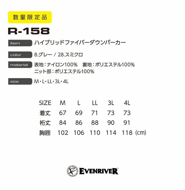 他の画像を見る スタイリッシュなスリムシルエットながら動きやすく保温性も高い。 イーブンリバー ハイブリッドファイバーダウン パーカー R-158 ジャケット ジャンバー ブルゾン 防寒服 防寒着 作業着 作業服 EVENRIVER イーブンRシリーズ【3L-4L】 本体価格 ¥ 5,304 税込 在庫切れ カートに入れる お気に入りに登録する
