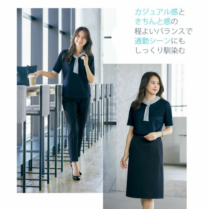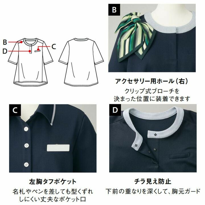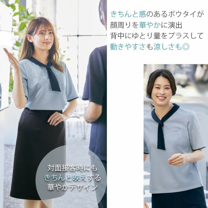 他の画像を見る ループに通すだけのボウタイ付き。スナップボタンで着脱がラクにできて、裾スリット入りでアウトスタイルに対応します。 タイカラーポロシャツ 半袖 事務服 AR7605-1 AR-7605-3 ホームウォッシャブル 高通気 ニット レディース 女性用 制服 ユニフォーム オフィス アルファピア チクマ トップス サラサラ 吸水 速乾 涼しい 夏 サマーニット 透け防止 UVカット Aライン 紺 ブルー 梅雨 コーデ 本体価格 ¥ 8,470 税込 カートに入れる お気に入りに登録する