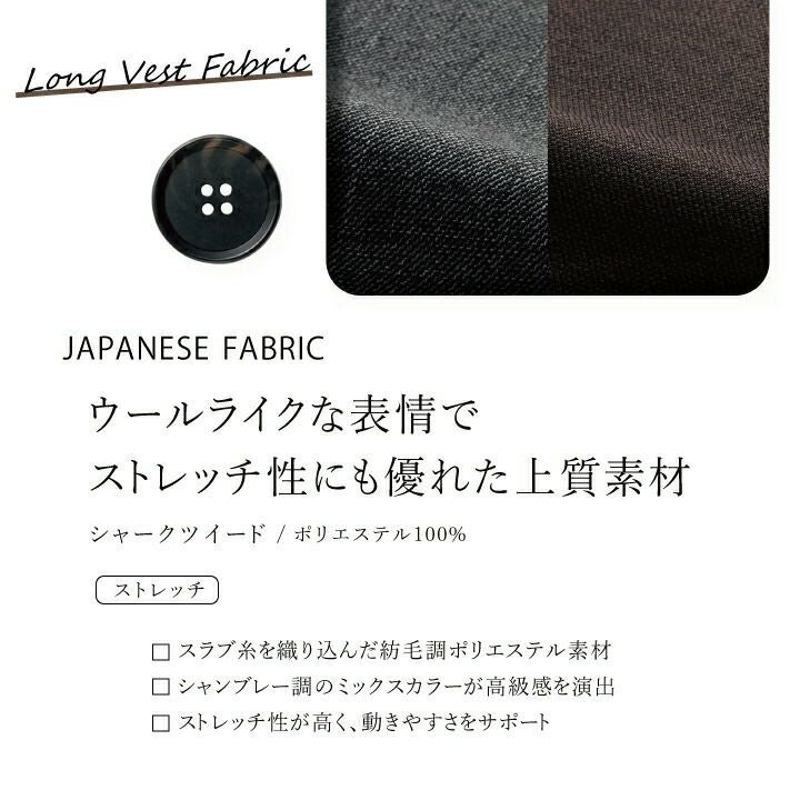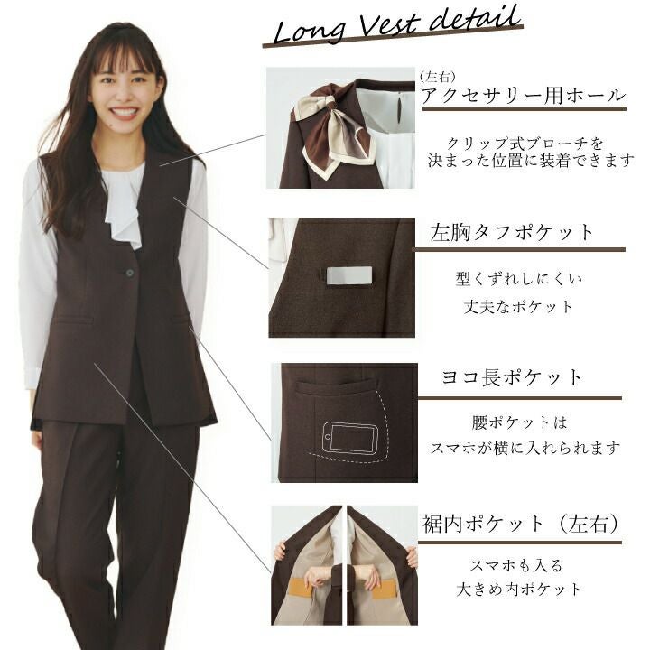 他の画像を見る 【サイズ:S M L LL 3L】アウター感覚で着こなせる旬のロングベスト。ストレッチ性が高い生地使用で動きやすさをサポート 秋冬 おしゃれ CHIKUMA チクマ ロングベスト AR2019-3 AR2019-4 グレー ブラウン 女性用 ストレッチ ポリエステル オフィスカジュアル 制服 ユニフォーム 秋 秋服 新作 ボックスシルエット セットアップ 可 きれいめ 本体価格 ¥ 13,860 税込 カートに入れる お気に入りに登録する