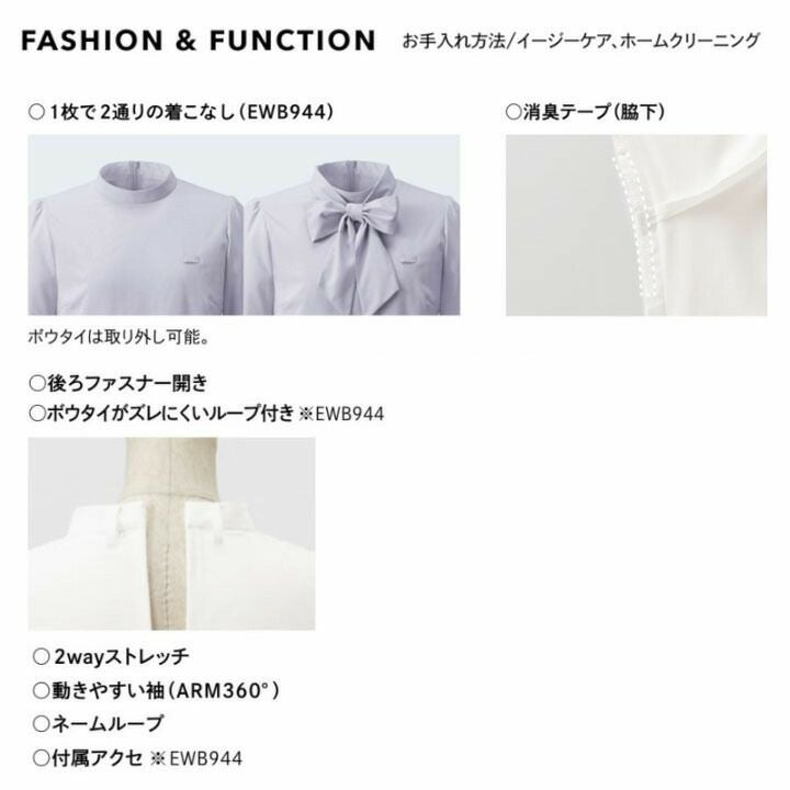 他の画像を見る 柔らかい着心地のデザインブラウス。ボウタイは取り外し可能で、1枚で2通りの着こなしが楽しめます ボウブラウス 九分袖 カーシー ENJOY EWB944 オフィス ボウタイ 2way レディース 女性用 エンジョイ 透けにくい ブラウス 吸汗 速乾 UVカット ストレッチ 長袖 洗えるトップス 大人かわいい 大きいサイズ フォーマル セレモニー 華やか 仕事服 体型カバー 秋 秋服 きれいめ 本体価格 ¥ 8,855 税込 カートに入れる お気に入りに登録する