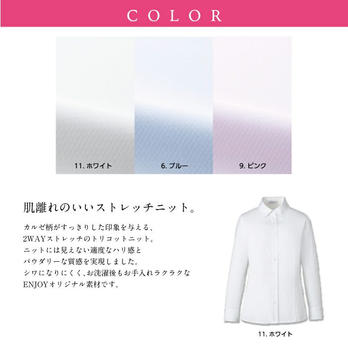 他の画像を見る 動きやすく、シワになりにくく、お手入れ簡単。ニット特有のダレ感を解消し、きちんときれい見え。通気性が良いのに透けにくい、万能ニットブラウスです。 シャツブラウス 長袖 カーシー ENJOY EWB871 事務服 オフィスウェア オールシーズン ストレッチ ニット 吸汗 速乾 形態安定 透け防止 UVカット 汚れが落ちやすい 高通気 ムレにくい レディース 女性用 制服 オフィス ユニフォーム エンジョイ【送料無料】 本体価格 ¥ 4,300 税込 カートに入れる お気に入りに登録する