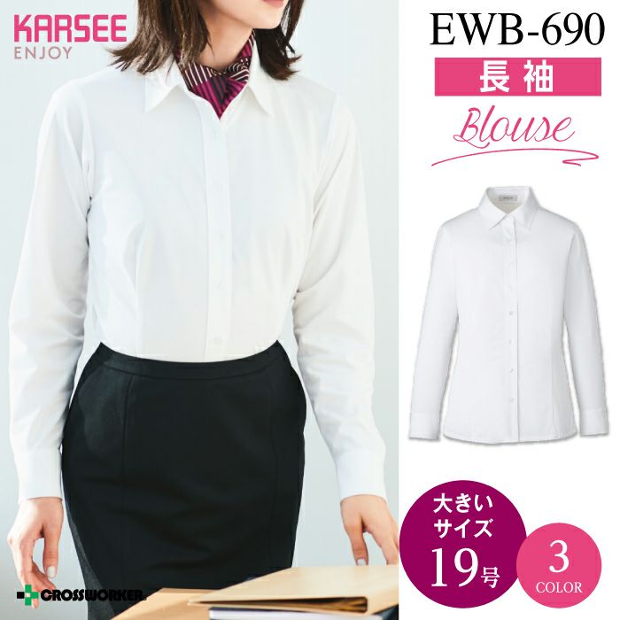 カーシーカシマ シャツブラウス(長袖)EWB-690【ENJOY】事務服 レディース【19号】 吸汗 速乾 UVカット 防透 ホームクリーニング 女性用 制服 ユニフォーム
