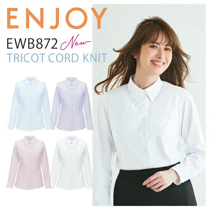 ブラウス 長袖 カーシー ENJOY EWB872 事務服 オフィスウェア オールシーズン ストレッチ ニット 吸汗 速乾 形態安定 透け防止 UVカット 汚れが落ちやすい 高通気 ムレにくい リボン付き レディース 女性用 制服 オフィス ユニフォーム エンジョイ【送料無料】