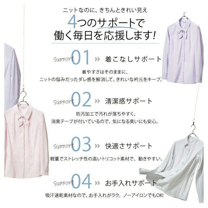 他の画像を見る 動きやすく、シワになりにくく、お手入れ簡単。ニット特有のダレ感を解消し、きちんときれい見え。通気性が良いのに透けにくい、万能ニットブラウスです。 シャツブラウス 長袖 カーシー ENJOY EWB875 事務服 オフィスウェア オールシーズン ストレッチ ニット 吸汗 速乾 形態安定 透け防止 UVカット 汚れが落ちやすい 高通気 ムレにくい レディース 女性用 制服 オフィス ユニフォーム エンジョイ【送料無料】 本体価格 ¥ 4,300 税込 在庫切れ カートに入れる お気に入りに登録する