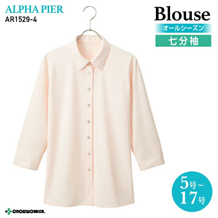 事務服 ブラウス 七分袖 AR1529-4 シェルピンク オールシーズン レディース【アルファピア/チクマ】女性用 制服 ユニフォーム