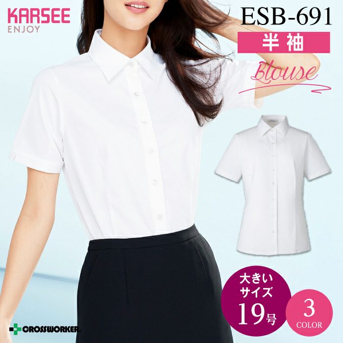 カーシーカシマ シャツブラウス(半袖)ESB-691【ENJOY】事務服 レディース【19号】 吸汗 速乾 UVカット 防透 ホームクリーニング 女性用 制服 ユニフォーム