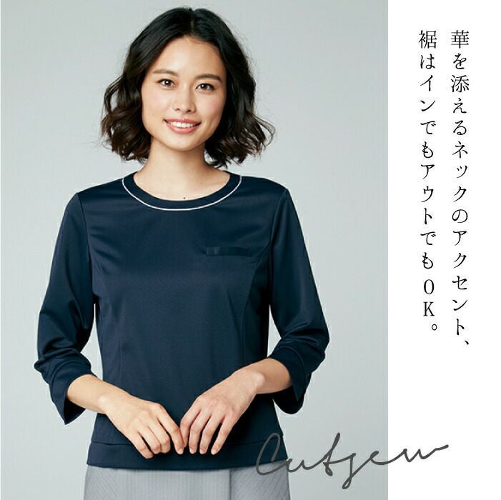 事務服 カットソー 七分袖 NF1039-1 NF1039-3 白 紺 ホワイト ネイビー オールシーズン レディース 女性用 制服 ユニフォーム アルファピア チクマ