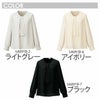 取り外しも可能なリボンタイの3wayブラウス。軽く薄手で程よい張り感のある、シワになりにくいストレッチ素材。ホームクリーニング オールシーズン
