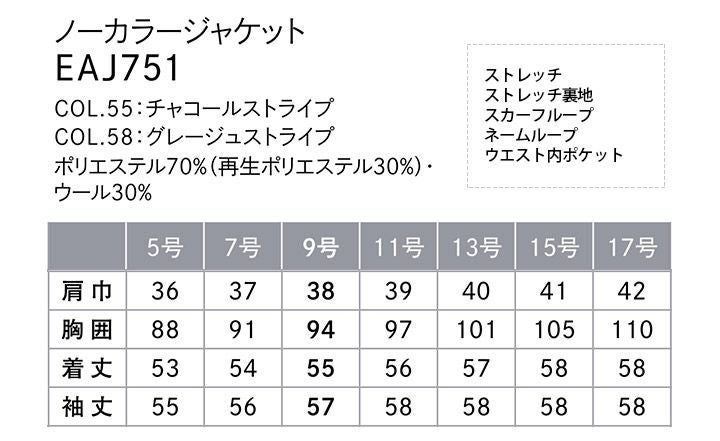 他の画像を見る 一年中ここち良く、エアコンに頼りすぎず過ごせるエコ素材。 ノーカラージャケット カーシー ENJOY EAJ751 事務服 オフィスウェア オールシーズン ストレッチ 消臭 保温 レディース 女性用 制服 オフィス ユニフォーム エンジョイ【送料無料】 本体価格 ¥ 19,662 税込 在庫切れ カートに入れる お気に入りに登録する