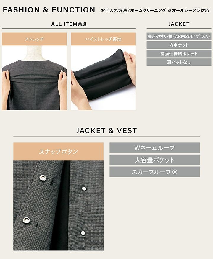 他の画像を見る 表地も裏地も銀のチカラで抗菌・防臭。着る人も、周りの人も安心。ほのかなシャドーチェック柄が、柔らかく親近感と上品な印象を与えます。 ジャケット カーシー ENJOY EAJ850 事務服 オフィスウェア オールシーズン ストレッチ 動きやすい 抗菌 防臭 静電気防止 ホームクリーニング レディース 女性用 企業 制服 ケアマネージャー ユニフォーム エンジョイ【送料無料】 本体価格 ¥ 17,000 税込 カートに入れる お気に入りに登録する