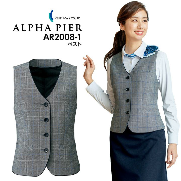 ベスト 事務服 AR2008-1 オールシーズン レディース 女性用 ストレッチ 防汚 帯電防止 制服 ユニフォーム オフィス アルファピア チクマ