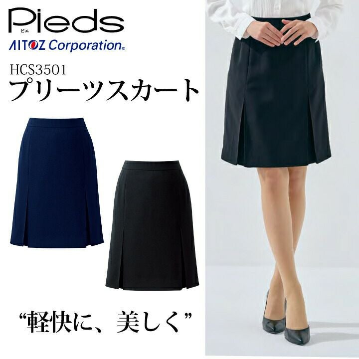 プリーツスカート 事務服 HCS3501 キテミテ体感シリーズ 前カーブゴムスカート オフィスウェア 会社 企業 制服 アイトス Pieds ピエ