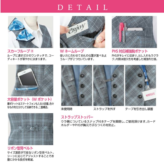 他の画像を見る 1サイズスマートに見せる!横から見たシルエットを美しいS字に。細身に見せても締めつけ感がないべスト。 カーシーカシマ ベスト EAV-679【ENJOY】事務服 レディース 女性用 制服 ユニフォーム 本体価格 ¥ 12,100 税込 在庫切れ カートに入れる お気に入りに登録する