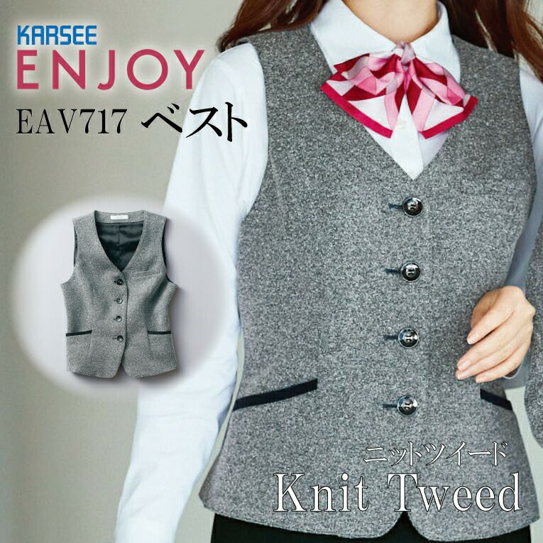 事務服 ベスト EAV717 EAV-717レディース 女性用 年間 オールシーズン オフィスウェア 制服 ストレッチ ニットツイード ホームクリーニング イージーケア 速乾 ユニフォーム 企業 会社 カーシーカシマ エンジョイ ENJOY