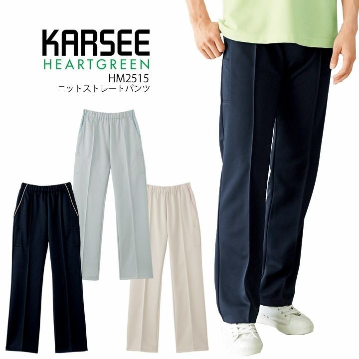 カーシー ニットストレートパンツ HM2515 男女兼用 ストレッチ 吸汗速乾 工業洗濯 HEARTGREEN(ハートグリーン) 介護 医療 メディカル ユニフォーム