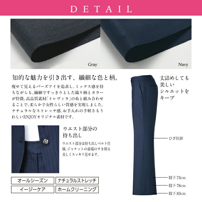 他の画像を見る フォーマル感たっぷり、控えめで優雅な淡黒ストライプ。丈詰めしても美しいシルエットをキープ!ストレッチ 抗菌 防臭 制電 ホームクリーニング カーシーカシマ フレアストレートパンツEAL-675【ENJOY】 事務服 レディース ストレッチ 抗菌 防臭 制電 女性用 制服 ユニフォーム 本体価格 ¥ 12,100 税込 在庫切れ カートに入れる お気に入りに登録する