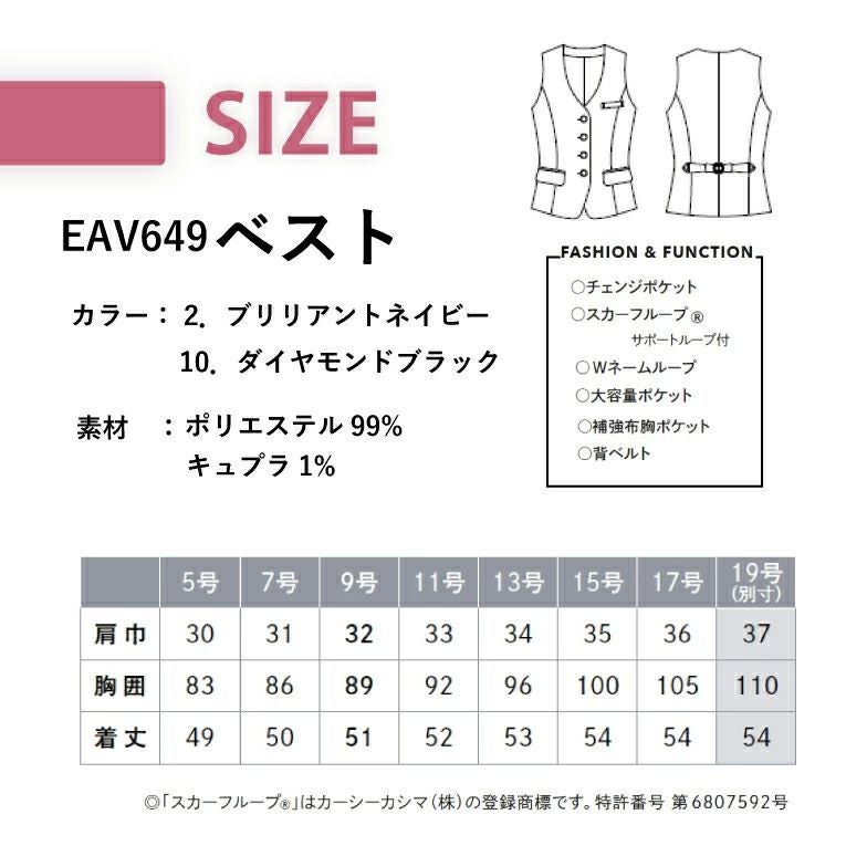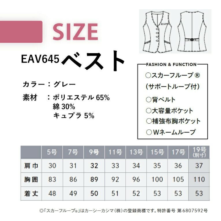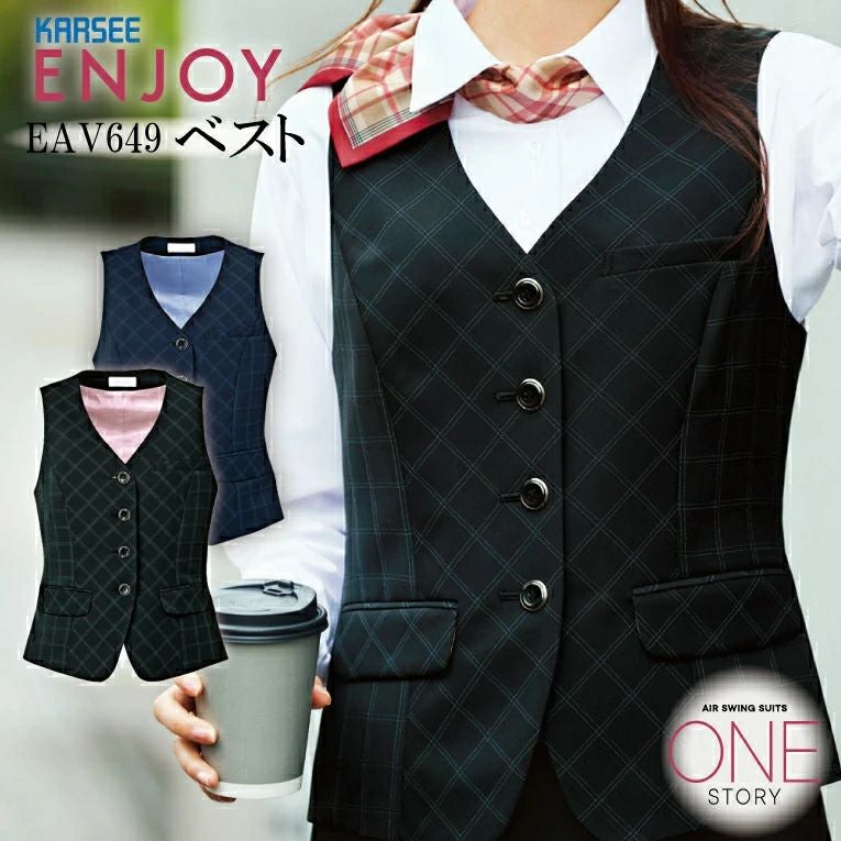 事務服 ベスト EAV758 EAV-758 レディース 女性用 年間 オールシーズン オフィスウェア 制服 ハイストレッチ グラフェンテック速乾 耐久性 好印象 使いやすい 動きやすい ユニフォーム 企業 会社 カーシーカシマ エンジョイ ENJOY