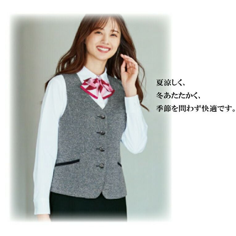 事務服 ベスト EAV717 EAV-717レディース 女性用 年間 オールシーズン オフィスウェア 制服 ストレッチ ニットツイード ホームクリーニング イージーケア 速乾 ユニフォーム 企業 会社 カーシーカシマ エンジョイ ENJOY