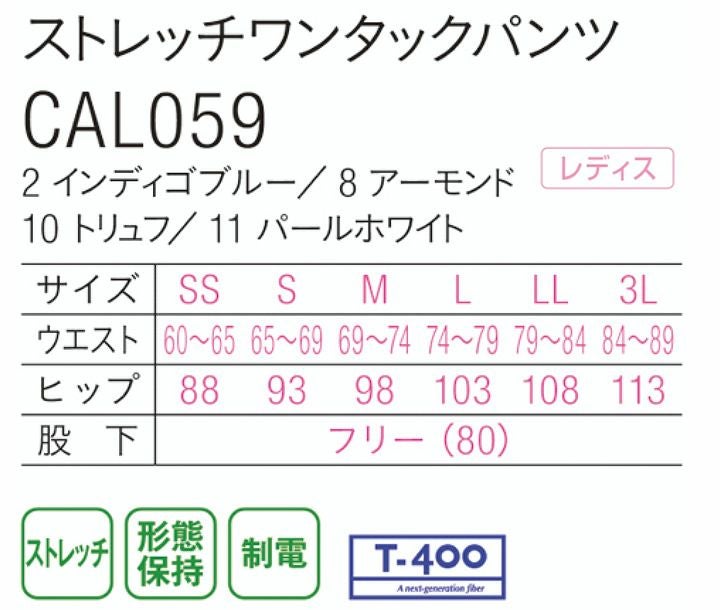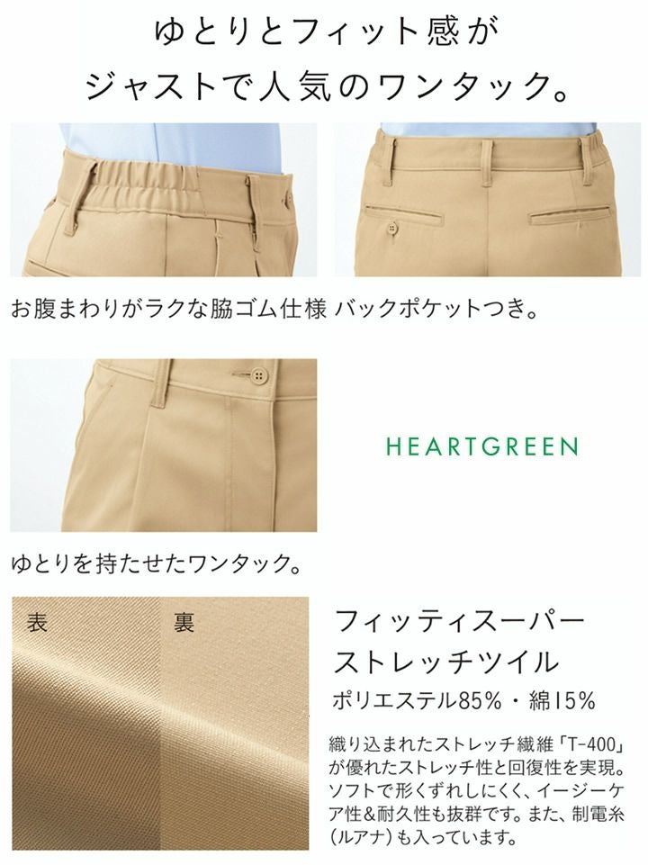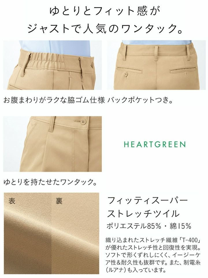 カーシー ストレッチワンタックパンツ CAL059 レディース 女性用 制電 ストレッチ 形態保持 HEARTGREEN(ハートグリーン) 介護 医療 メディカル ユニフォーム