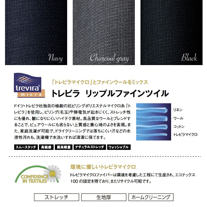 シワになりにくい4WAYストレッチのヘリンボーン。エコフェアで冬の静電気を防止!吸汗 速乾 防汚 制電 ホームクリーニング