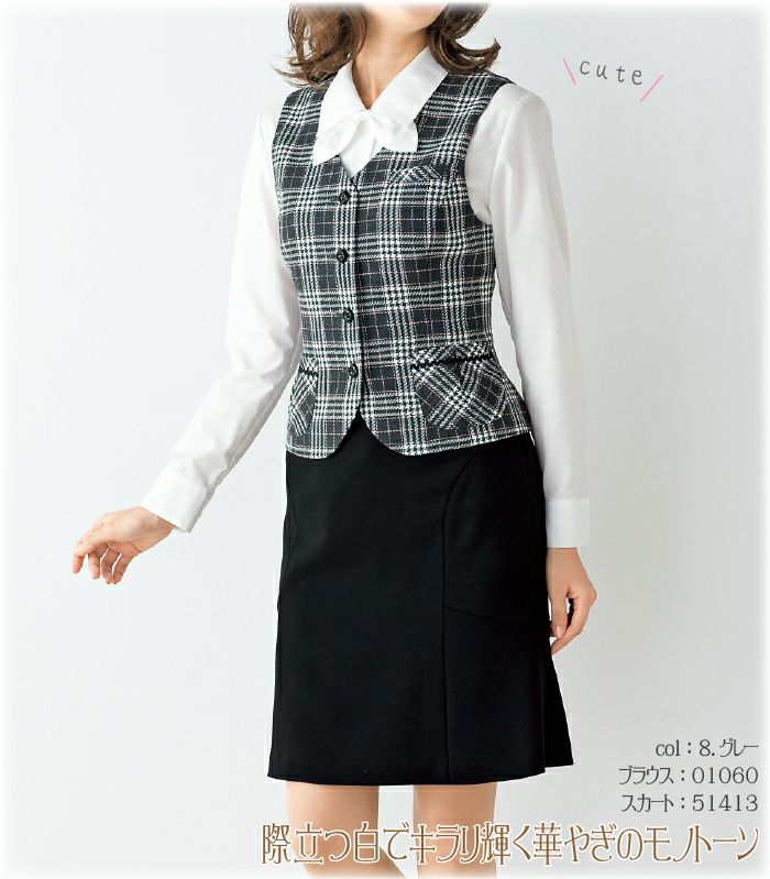 他の画像を見る 際だつ白でキラリ輝く華やぎのモノトーン元気なモノトーンチェックソフトな着心地のウール混素材で上品に仕上げました 【送料無料】アンジョア en joie 11260 ベスト【生地厚:4】【年間・ポリ80%毛20%】 事務服 女性用 レディース 定価 ¥ 19,404 のところ 本体価格 ¥ 13,475 税込 在庫切れ 詳細を見る お気に入りに登録する