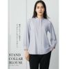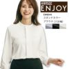KARSEE スタンドカラーブラウス 八分袖 後ろファスナー カーシー ENJOY EWB945 オフィスウエア オールシーズン ストレッチ 吸汗 速乾 UVカット 透けにくい レディース 制服 ユニフォーム オフィスカジュアル 秋 秋服 新作 デザインシャツ 白 グレー 黒 きれいめ