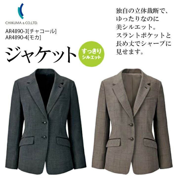 ジャケット 事務服 AR4890 レディース 女性用 ストレッチ 抗菌消臭 帯電防止 制服 ユニフォーム オフィス アルファピア チクマ AR4890-3 AR4890-4