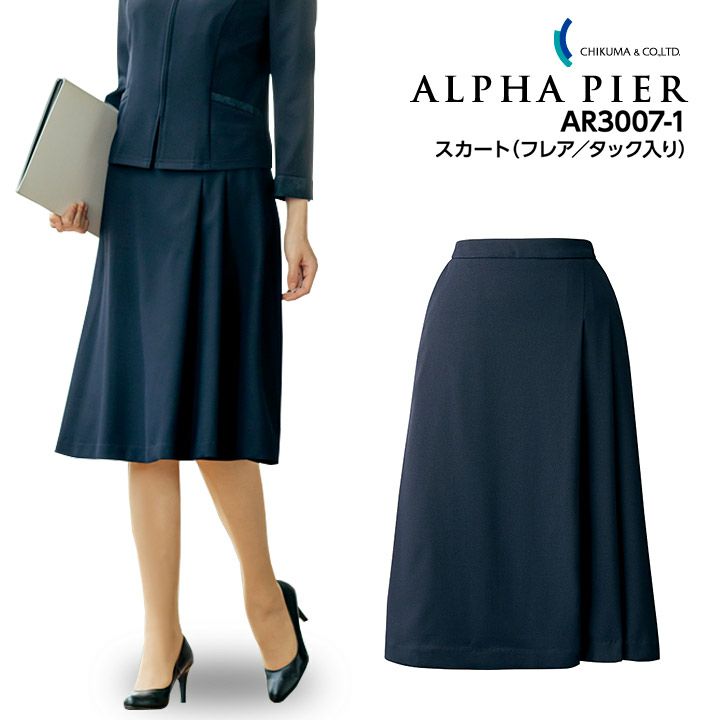 スカート フレア/タック入り 事務服 AR3007-1 レディース 女性用 ストレッチ 消臭 帯電防止 オールシーズン 制服 ユニフォーム オフィス アルファピア チクマ