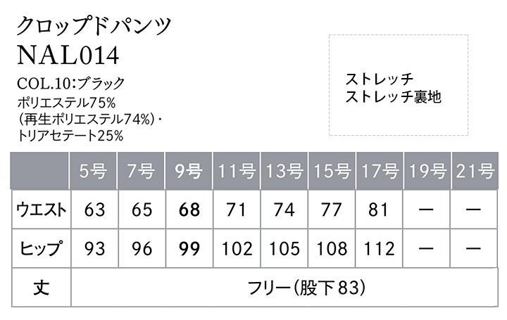 他の画像を見る 光沢のあるシルキーな上質感、天然由来のサスティナブル素材。 クロップドパンツ ENJOY Noir NAL014 事務服 オフィスウェア オールシーズン 速乾 ストレッチ レディース 女性用 フォーマル 制服 オフィス ユニフォーム カーシー エンジョイ【送料無料】 本体価格 ¥ 11,200 税込 在庫切れ カートに入れる お気に入りに登録する