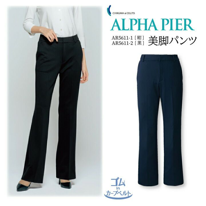 美脚パンツ 事務服 AR5611 レディース 女性用 ストレッチ ホームウォッシャブル 抗菌抗ウイルス 防臭 防シワ 吸汗速乾 夏用 紫外線カット ニット ドライタッチ 制服 ズボン ユニフォーム オフィス アルファピア チクマ