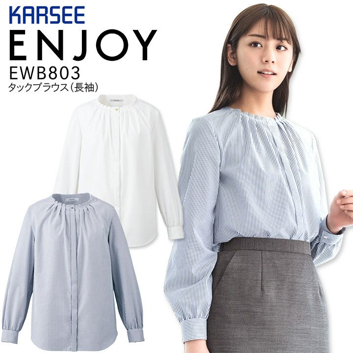 オフィスブラウス レディース タックブラウス 長袖 カーシー ENJOY EWB803 事務服 オフィスウェア ストライプ 無地 フォーマルブラウス レディースブラウス オールシーズン 吸汗 速乾 形態安定 透け防止 UVカット 制服 女性用 オフィス ユニフォーム エンジョイ【送料無料】